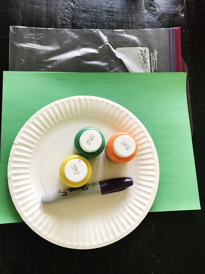 Supplies – Construction Paper, Scissors, Crayons/Paint/Markers, Glue, Pencil/Pen, Paper Plate, Ziplock bag
