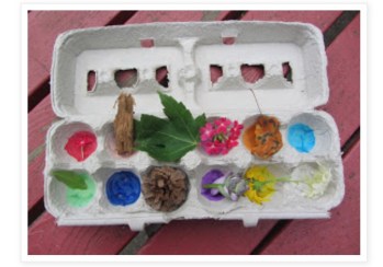 This fun activity could be done in your yard or at a park. Fill up an egg carton (or add colors to a paper) and ask the children to gather items for each color. Very simple but tons of fun and busy time for the children.