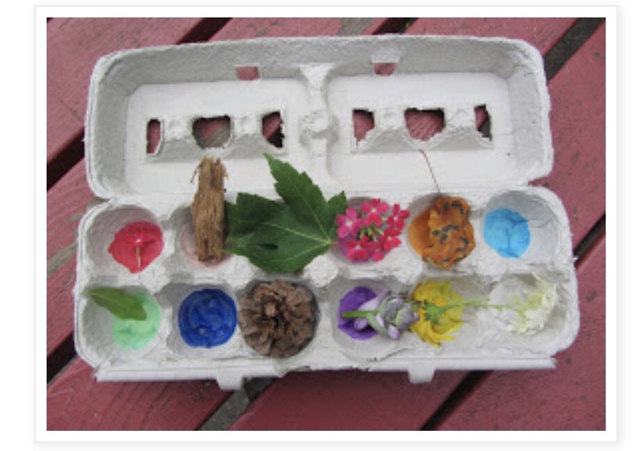 This fun activity could be done in your yard or at a park. Fill up an egg carton (or add colors to a paper) and ask the children to gather items for each color. Very simple but tons of fun and busy time for the children.