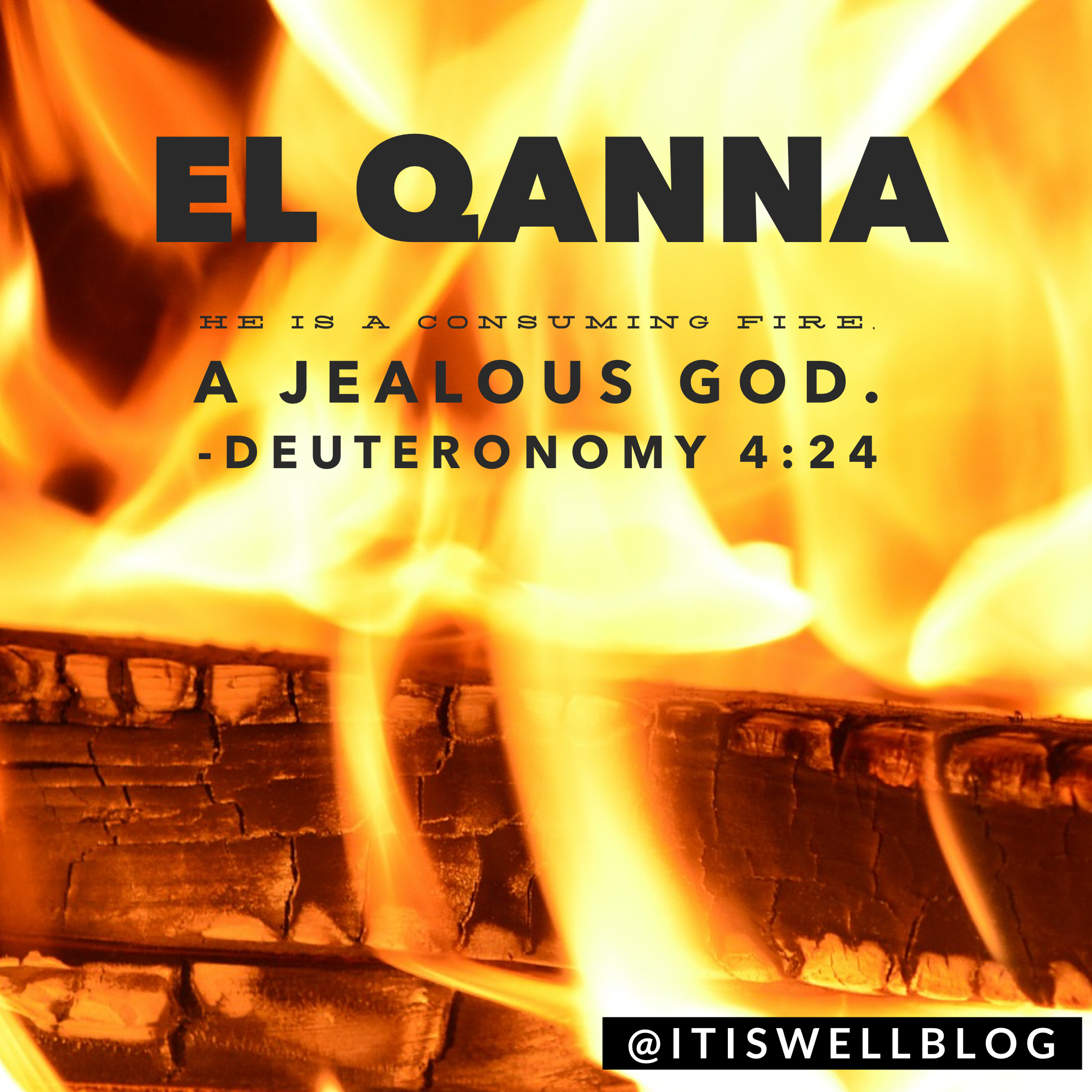 “Our God is a jealous God, desiring our praise to be for Him alone. El Qanna is about the marriage relationship between Yahweh and us. His jealousy is not out of selfishness, but a passionate love saying, “never will I leave you, never will I forsake you”. It is because of His burning love for us that His jealousy is so great.